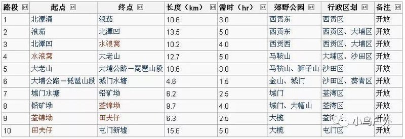 8、铅矿坳至荃锦公路(9.7公里,4.0小时,难度:**)终点有士多可以补充食物和水。全程无营地。从大帽山顶下来大约2KM,路右边有小小溪水可补充。