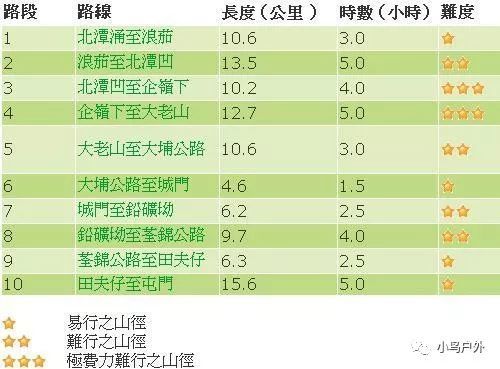 3、北潭凹至企岭下(10.2公里,4.0小时,难度:***)嶂上有士多和营地,终点企领下有厕所,有自来水。
