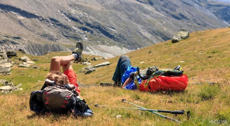 休息时应尽可能坐下(有条件甚至可以平躺),如果不方便坐下休息,可用登山杖支撑背包,或者靠在山石上分担背包重量。休息的同时可以趁机喝水以及吃一些东西,保证下一段路程的能量供给。