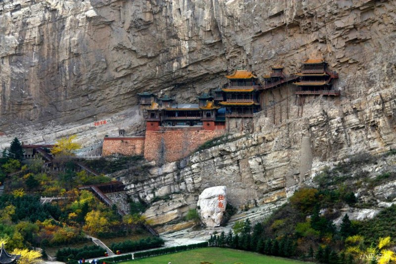 悬空寺可远观,也可登寺一览恒水。我曾上去,身在其中反而看不到三根马尾,倒是讲解让我们了解了悬空寺的前世今生。