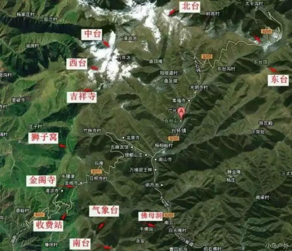 小圈或下撤路线:户外路线无门票游台怀镇,拜五爷庙、白云寺、佛母洞,金顶寺